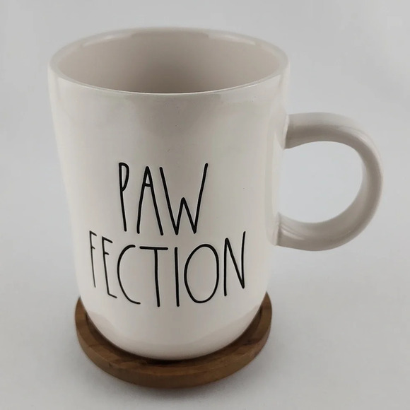 NEW Rae Dunn Artisan Collection by Magenta mug in glossy white with fun large black letters PAW FECTION engraved on one side and a cute Dachshund illustration on the other side! With a glossy white interior. The lid can also be used as a coaster.