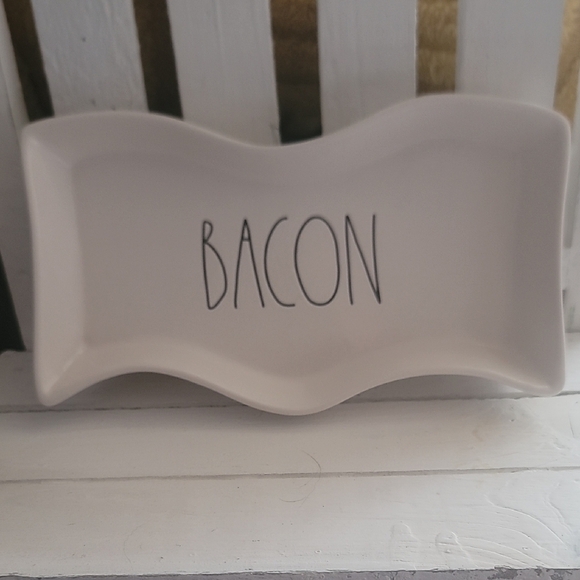 Elegant Rae Dunn trays with 'Bacon' text. Perfect for serving.