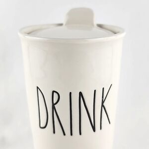 Rae Dunn Ceramic Travel Insulated Tall Mug Drink Lid Cup DRINK Large Letters