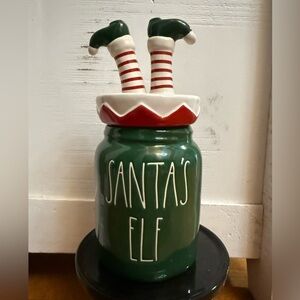Rae Dunn Green Santa's Elf Holiday Canister