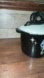 Stylish black ceramic pot featuring a snake design on the lid. Perfect for adding a unique touch to your kitchen decor.