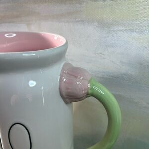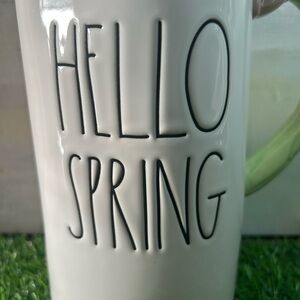 Celebrate spring with this Rae Dunn pitcher Features a cheerful green tulip design handle and 'Hello Spring' design.