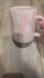Charming Rae Dunn mug with 'Hey Boo' design. Light pink hue adds a playful touch.