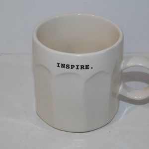 This beautiful Rae Dunn INSPIRE Typewriter Font Coffee Mug is in great clean condition. Mug measures 4" tall and 4" in diameter at the opening. Dishwasher and Microwave Safe.