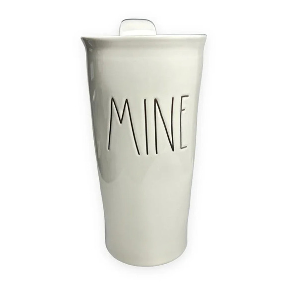 Rae Dunn MINE Tall Ceramic Travel Mug with Lid