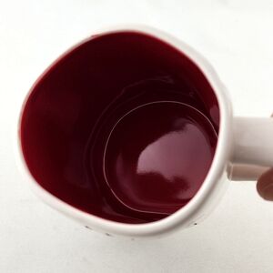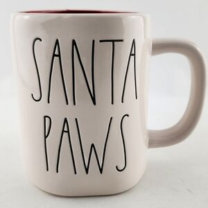 New Rae Dunn Artisan Collection by Magenta mug in a glossy white with fun large black letters SANTA PAWS etched on one side and a red glossy coloured interior.