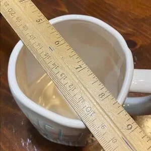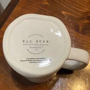 This is a ceramic coffee mug from the Rae Dunn Artisan Collection by Magenta. The mug is typically 16 ounces and is dishwasher safe.