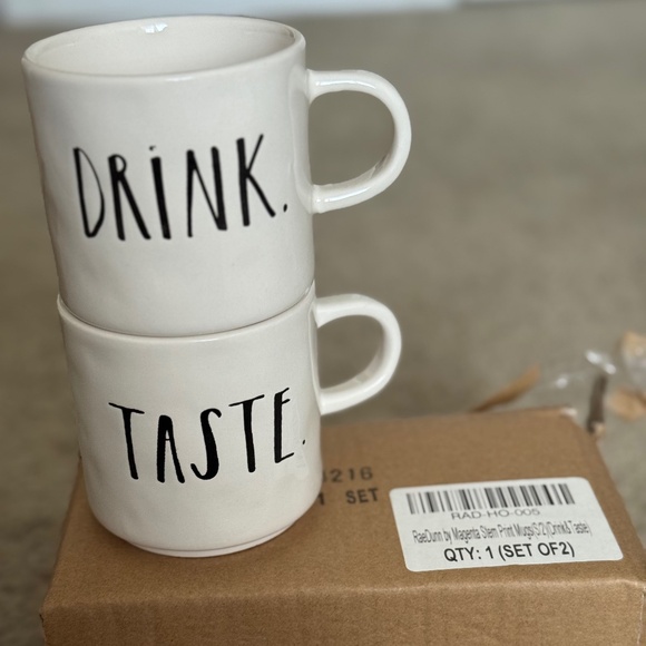 Brand: Rae Dunn Mugs Quantity: 2 Mugs Sayings: Taste on one mug and Drink on then other Brand new- never used