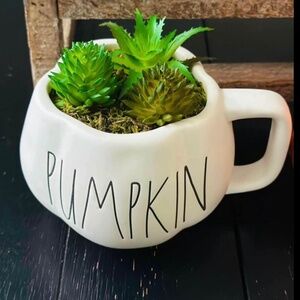 Artificial Mini Succulent Garden displayed in a mug. Mug measures 6” wide x 4” tall. Cute fall decor 🌱 🧡