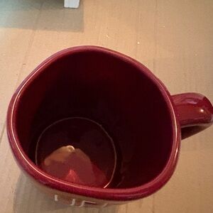 Elegant red Rae Dunn mug. Artisan collection. Ideal for cozy drinks.