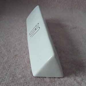 Rae Dunn Triangular Ceramic Desk Sign "Eh?", White with Black Lettering