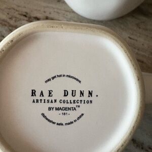 Please look at all photos for any minor factory defects/ flaws. Rae Dunn is known to have minor flaws such as pin holes, glazing flaws, paint drips, crazing etc.
