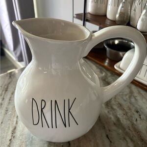Charming Rae Dunn pitcher with 'Drink' text. Ideal for stylish beverage serving.
