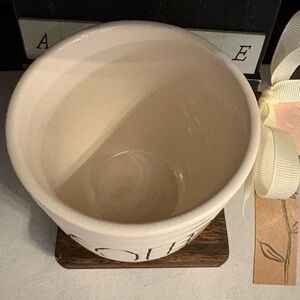 Please look at all photos for any minor factory defects/ flaws. Rae Dunn is known to have minor flaws such as pin holes, glazing flaws, paint drips, etc.