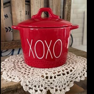 This adorable mini crock pot in the color red is perfect for Valentine's Day! With the adorable XOXO design by Rae Dunn, it's sure to add a touch of farmhouse style to any kitchen. Made of ceramic, it includes a lid and has a height of 5" and diameter of 4". Use it to store small items or as a decorative piece on a shelf. Don't miss out on this charming addition to your collection! Makes a perfect gift 🎁