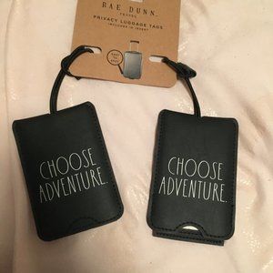 set includes 2 luggage tags that read "Choose Adventure" in the classic rae dunn print!
