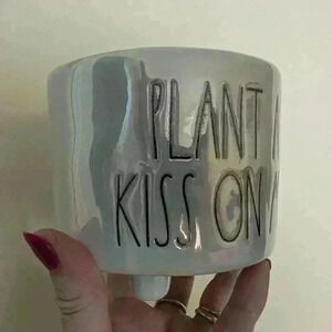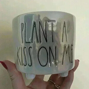 Rae Dunn iridescent small plant pot says plant a kiss on me