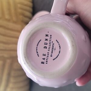 Charming Rae Dunn pink mug with a heart, Comes with a matching saucer.