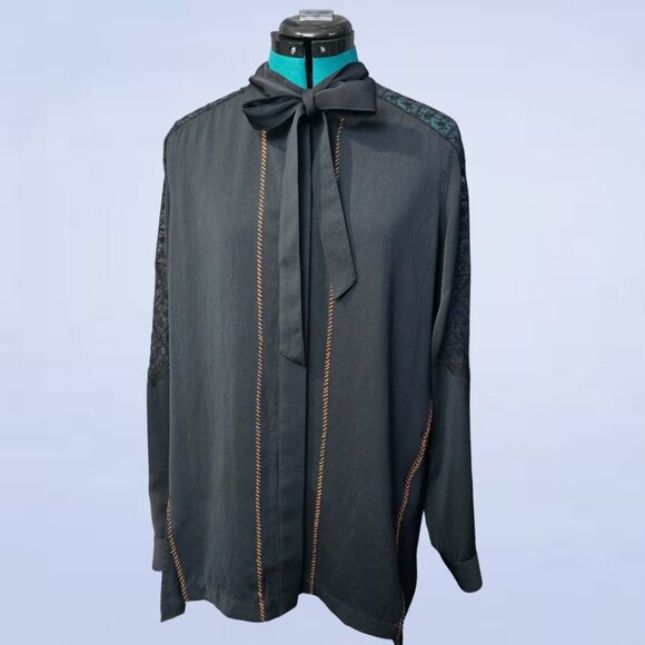 Rag & Bone Black Button Up Blouse Size Large | Statement Stitch Long Sleeve Lightweight Top