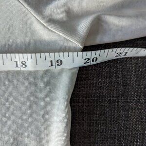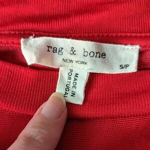 This lightweight top from Rag & Bone is super interesting. The fabric is a slinky sort of synthetic and cotton blend, and there are stitched details under the arms in the white area. The cut is fairly cropped, with sleeves that aren't full length.