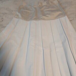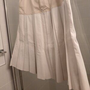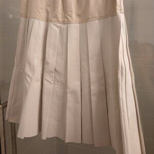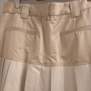 Extremely Rare! Rag & Bone Women's Two Tone Fog Brooke Limited Edition Pleated Satin Feel Cotton & Soft Luxurious Baby Calf Leather Skirt.• Natural rise• Side pockets• Dropped waist• Pleated, A-line shape• Hook/zip front