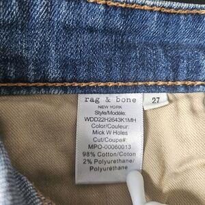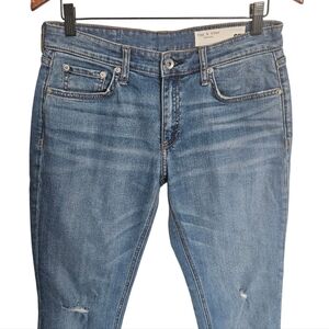 Stylish blue jeans by Rag & Bone. Features a classic design with rolled cuffs and distressed details. Perfect for casual wear.