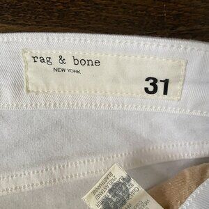 Selling a pair of Rag & Bone Dre Mid Rise Boyfriend White Denim Jeans-Size 31. A low-rise, slim boyfriend jean. Made from Italian stretch denim. Classic 5-pocket details. 92% cotton, 6% polyester, 2% elastane.