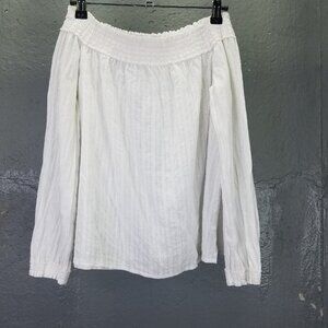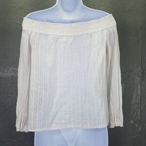 Rag & Bone Drew Blouse Women S Off Shoulder Smocked White Stripe Cotton Crop Top