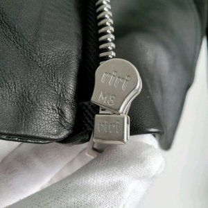 A collarless silhouette and ribbed panels along the sleeves and bodice give this supple leather jacket an ultra-sleek look.