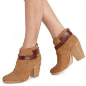 Rag & Bone Harrow Bootie Tan Brown Suede Ankle Boots Leather Strap Size 37/7