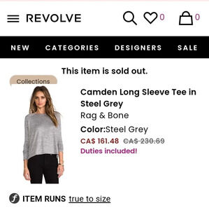 Rag & Bone Jeans Camden Long Sleeve Tee with Step Hem Soft Oversize Relaxed XS