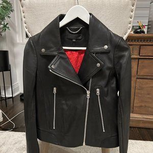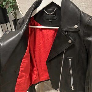 NEVER WORN. Black leather biker jacket from RAG & BONE featuring long sleeves, front zip fastening pockets and front zip fastening.