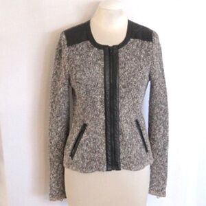 Rag & Bone Lori tweed leather Trim Moto Jacket. Color: Multi Pattern/Black. SIZE: S (armpit to armpit measures 16") Edgy leather trim lends a modern dimension to an artfully marbled motorcycle themed jacket. Features: