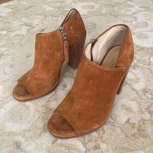 Rag & Bone Mabel Peep Toe Tan Suede Leather High Heel Ankle Booties