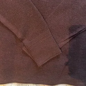 Elegant maroon Henley with button accents. Ideal for relaxed style. 100% merino wool. Size Small