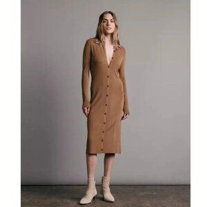 Rag & Bone Pacey Button Down Midi Dress Ribbed Knit in Light Brown