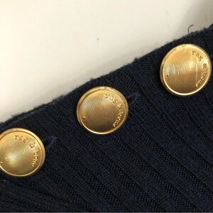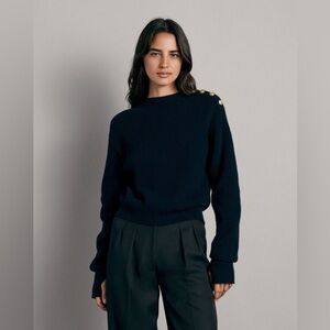 A ribbed crew neck sweater crafted from a merino wool blend. Accentuated with gold signature dagger buttons at the shoulder for a nautical look.