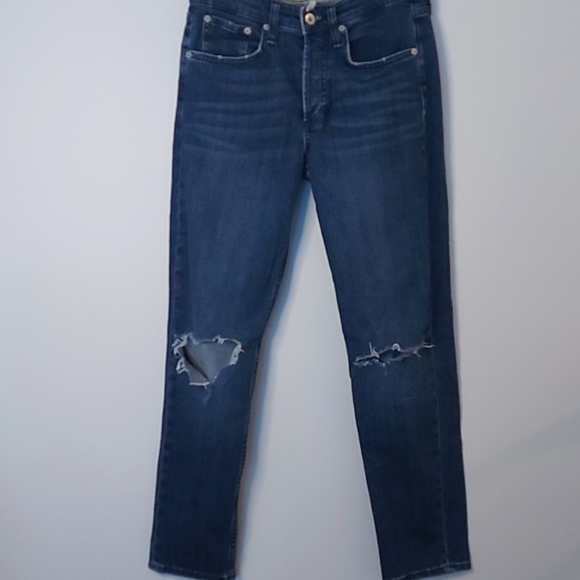 Rag & Bone Rosa Mid Rise Destressed Straight Leg Jeans Size 24