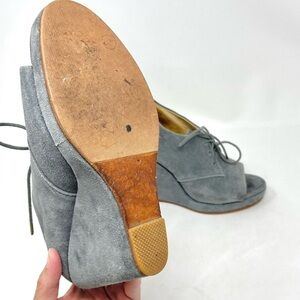 Rag & Bone Sahara Grey Suede Open Toe Lace Up Platform Wedges Size 38