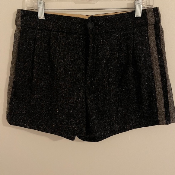 Amazing rag & bone wool blend shorts, perfect for fall or winter with tights. Mid-rise fit, size 6, 30" waist. Dark grey flocked wool blend outer, satin lined. Very dark academia or indie sleeze vibes.