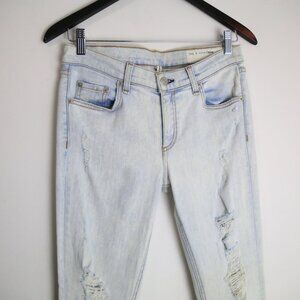 Rag & Bone Zipper Capri Distressed Destroyed Shredded Bleachout White Jean Sz 29