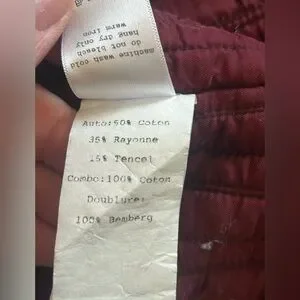 Cotton/rayon/tencil blend with a Bemberg lining. Logo snap button detail and pockets.