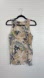 Sleeveless silk top in tones of white, tan, green, pink and navy