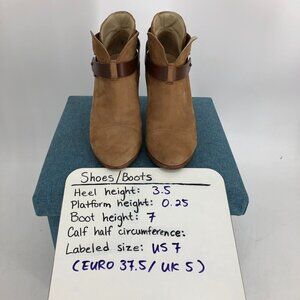 Rag and Bone Harrow Warm Brown Leather Ankle Strap Block Heel Ankle Boots