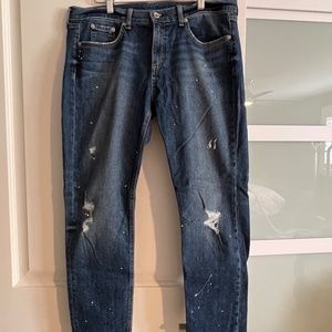 Dre Mid-Rise Slim Straight-Leg Ankle Jeans w/ Splatter Paint