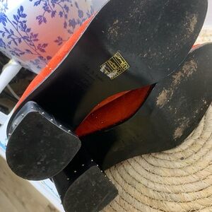 Perfect Lux back zip booties in a rich orangey red suede. No call-outs. Worn twice. Tagged 39.5 , I am a true 9 and they are slightly too tight. Best for an 8 or 8.5. Comfy chunky heel with stud detailing. Absolutely fabulous. 0ne decorative stud missing, absolutely unnoticeable Retail at $450
