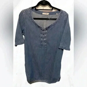 Rag and bone SS western stylish blue denim work casual lace front tunic blouse S