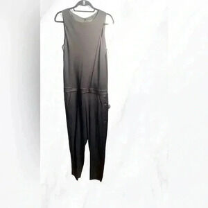Rag and bone day 2 nite stylish black sleeveless leather trim jumpsuit romper 6