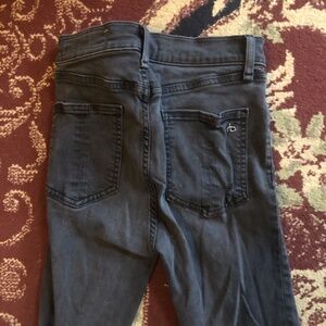 Rag and bone stressed black jeans - high rise skinny size 26 - faded black jeans clingy skinny fit, knees are missing and there is fringe on bottom of hem. Reminds me of the 70,s .Dress this up with high boots and a shorty top and you’re ready to hit the dance floor.