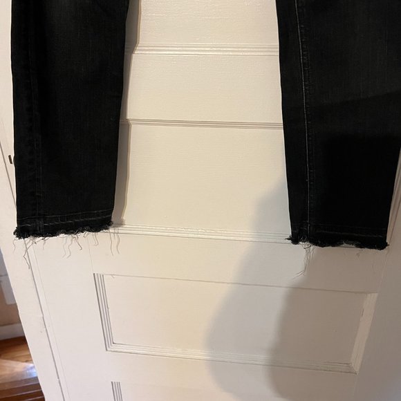 Made in the U.S.A. A slim-fit, five-pocket boyfriend jean with faded edges and subtle whiskering across the hips. The frayed, distressed hem hits just above the ankle, making them perfect to wear with everything from slides to booties.